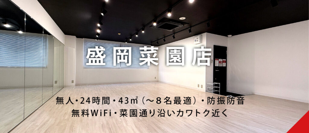 | 盛岡菜園店 | 24時間営業 | 43㎡ | ¥590〜¥1,590 |